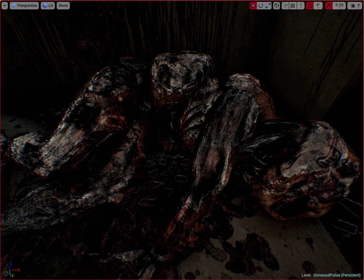 The monster you see in those two screens actually looks even more disgusting in-game than it does in the modeling program so it was an unexpected but welcome bonus! Also, expect to see a lot of wooden pallets in this game because Grinwood’s main export is wooden pallets… apparently..!?